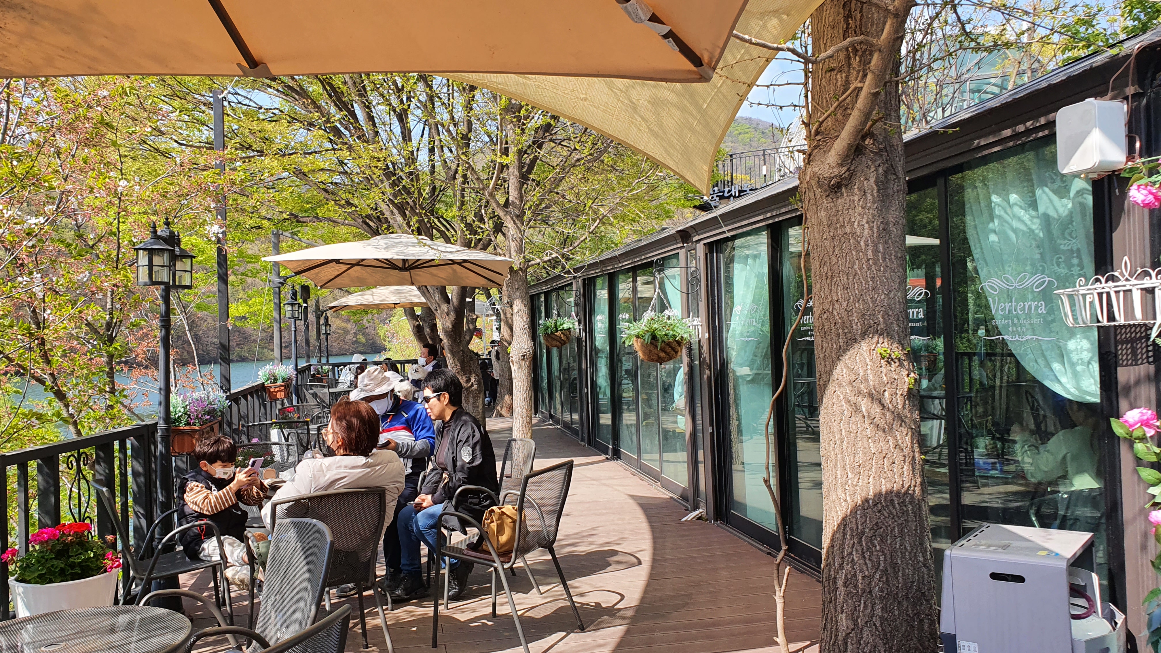 카페에서 커피 한잔씩 마시며 조금 쉬다가