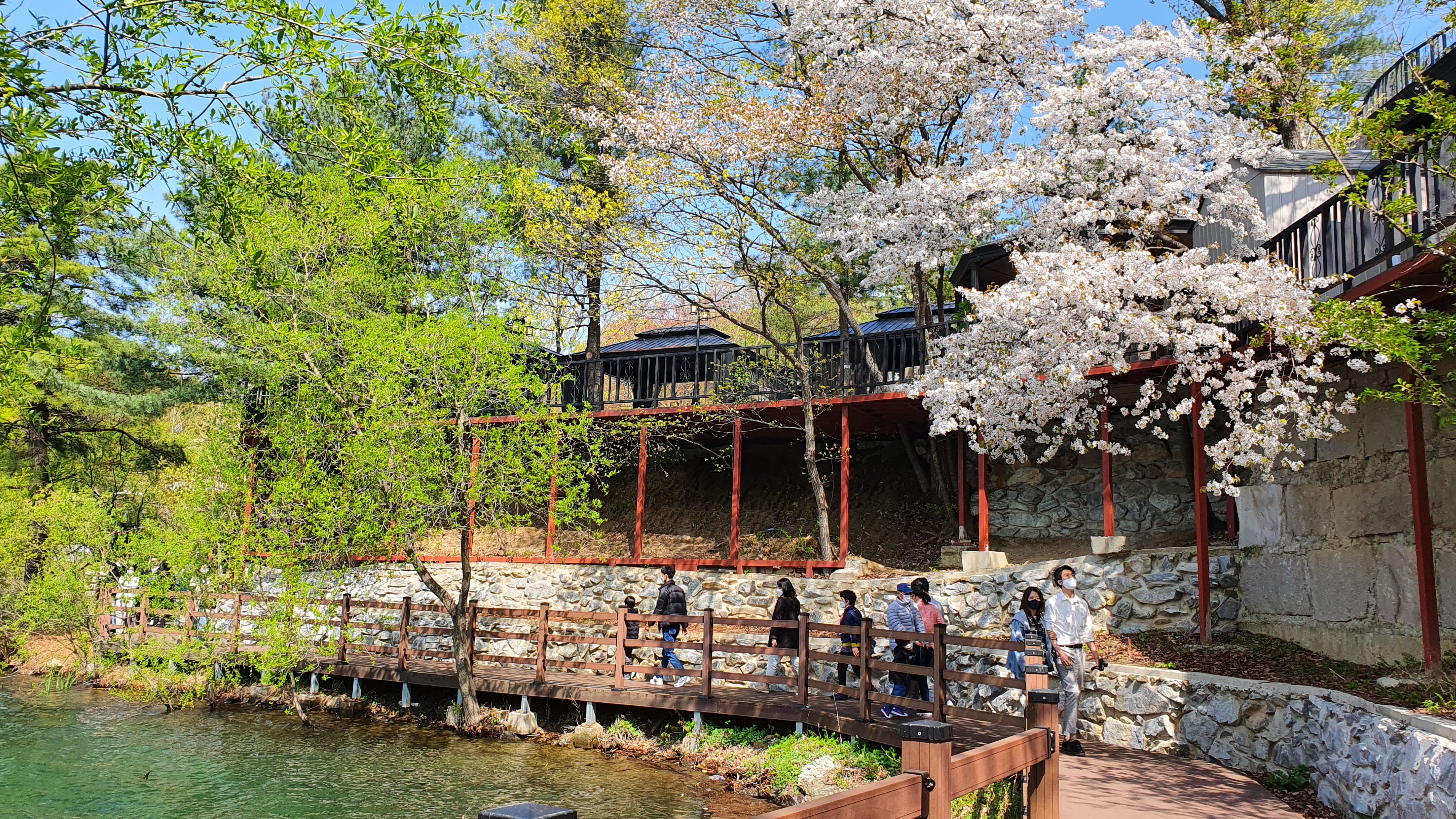 마장 호수로 가는 길은 아직도 벚꽃이 남아 있더라니.