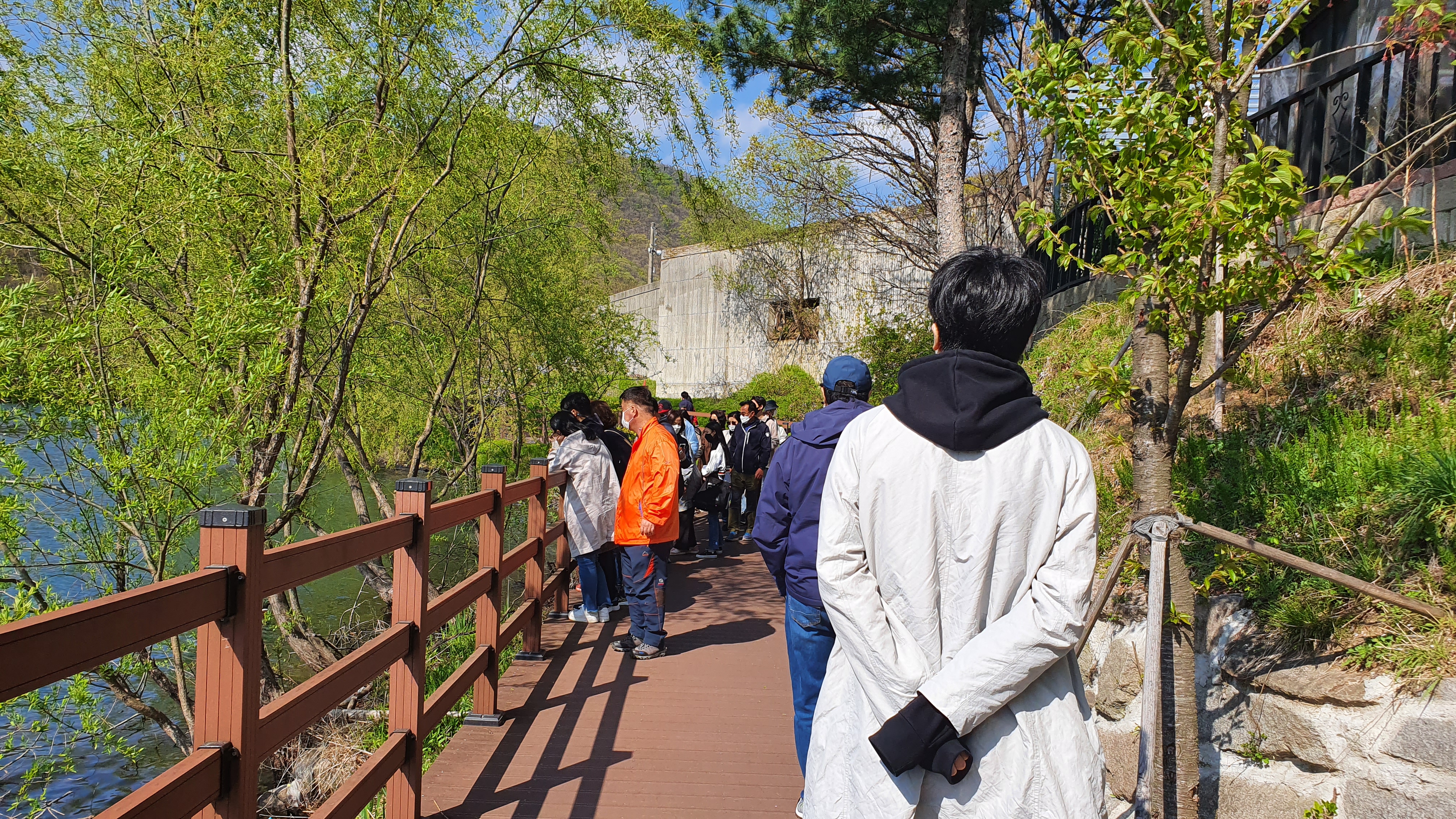 기다리는 사람들이 많아 길게 줄을 서있다.