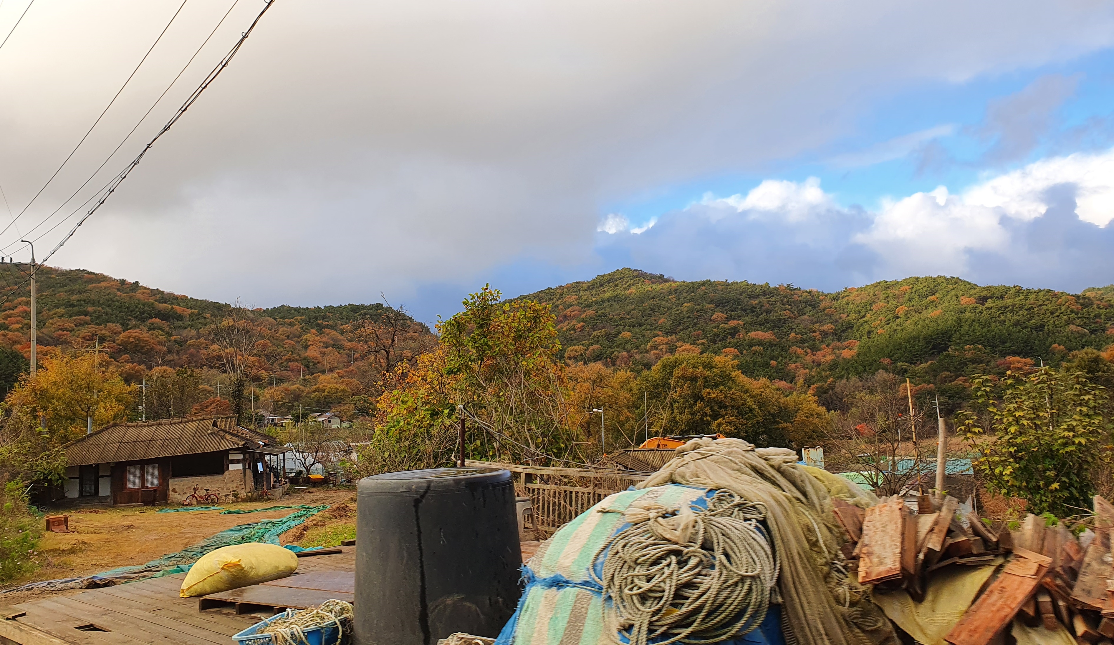 농가 옆에는 걷어낸 그물이