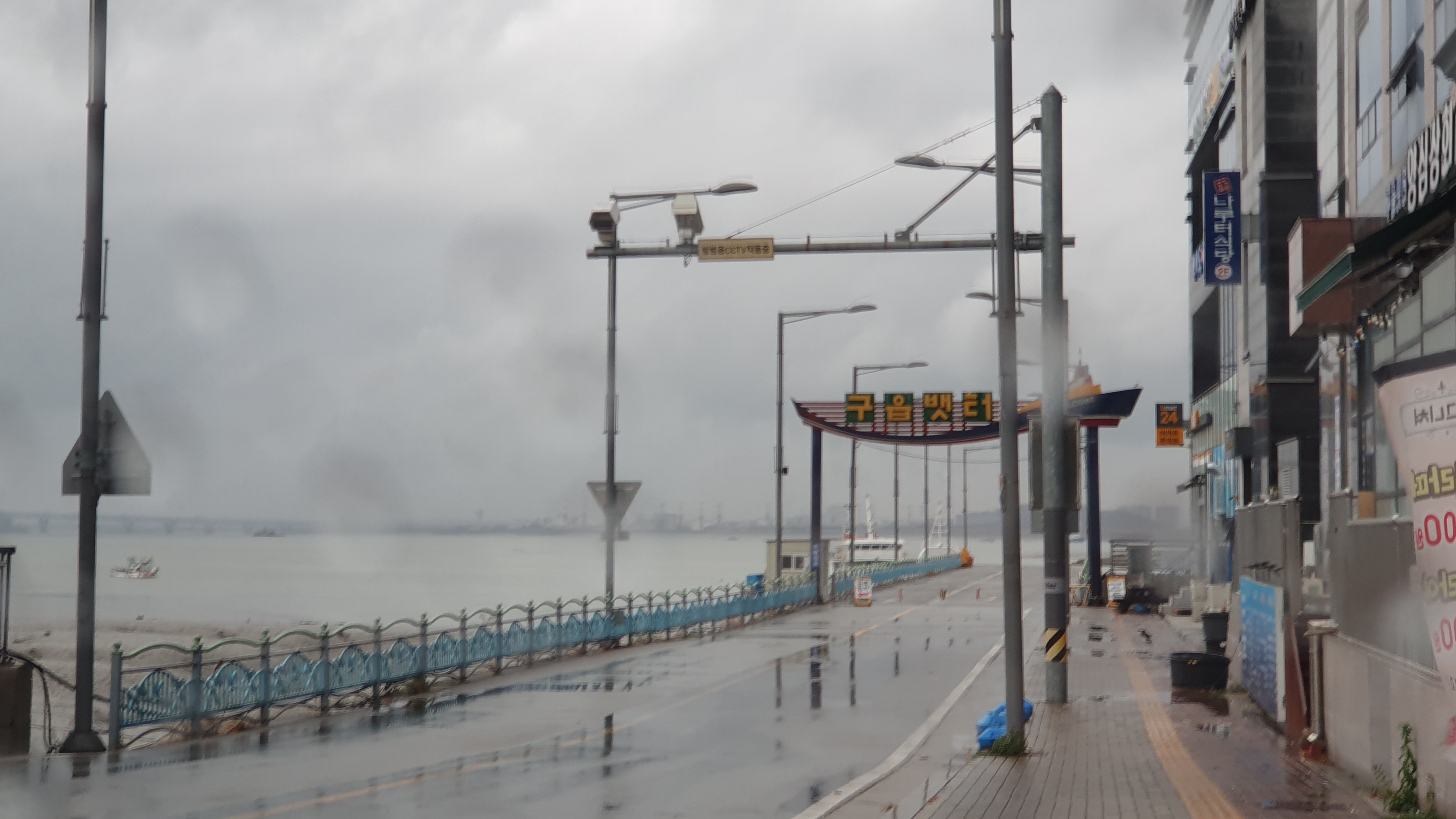 우산도 소용없는 비바람 속에서