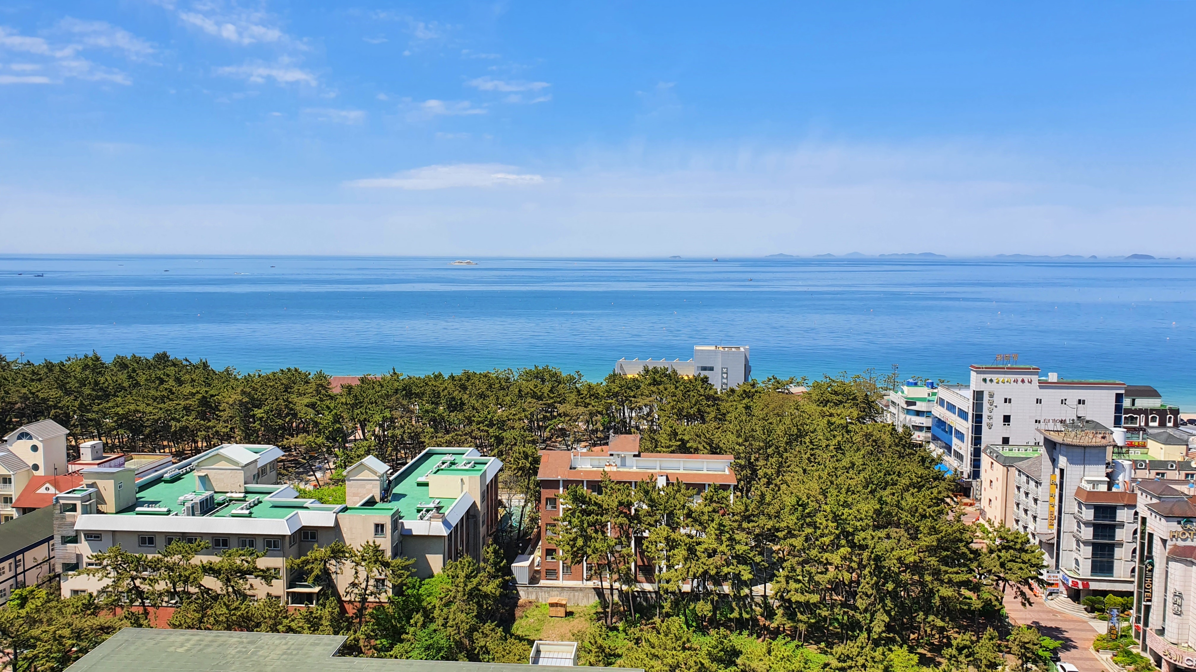 창밖으로 내다본 대천 바다의 몽환적인 색감은