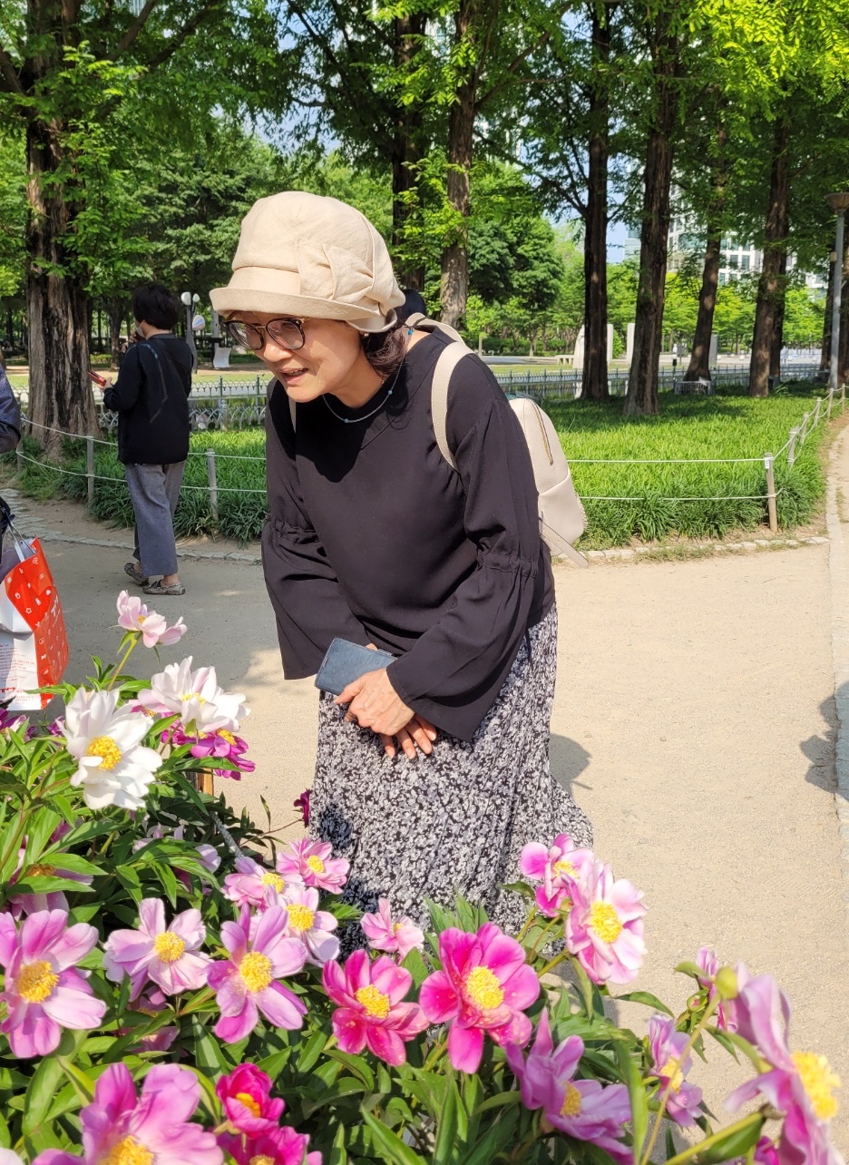 작약꽃을 보며 넋 잃은 내 표정이 너무 우습다.