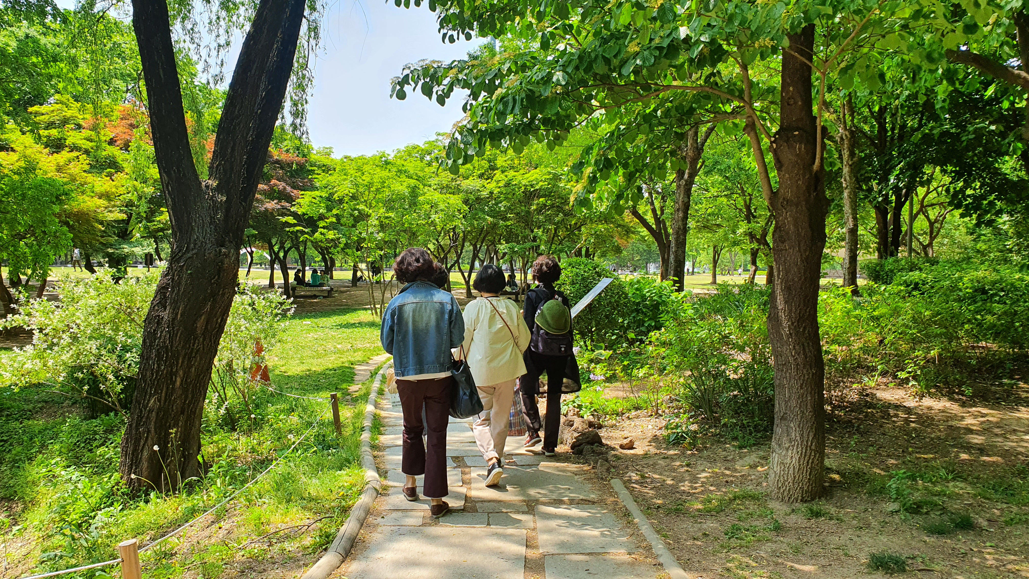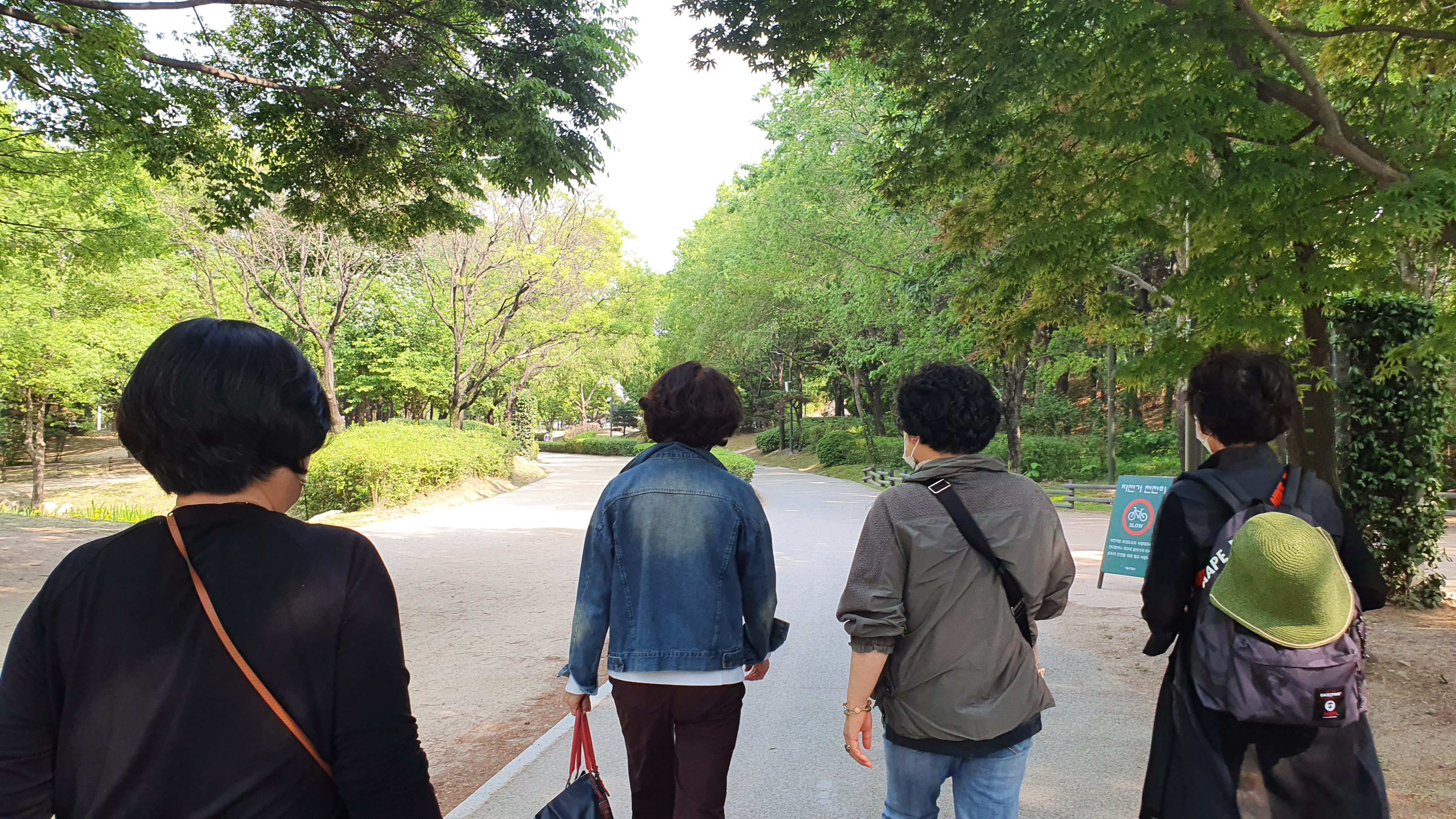 도란도란 이야기 나누며 걷는 녹색 물결 속.
