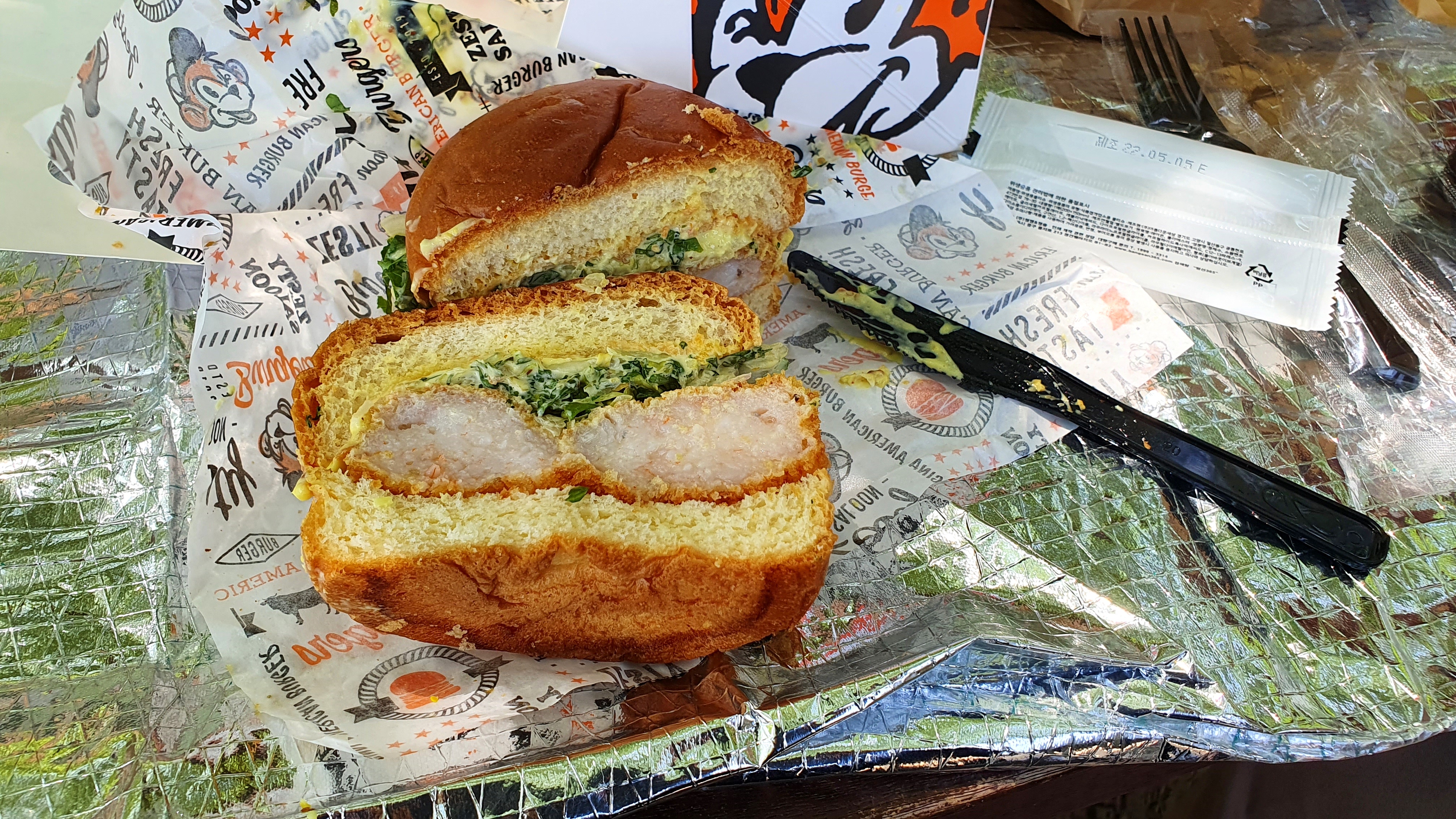 두툼한 새우가 들어간 쉬림프 버거는
