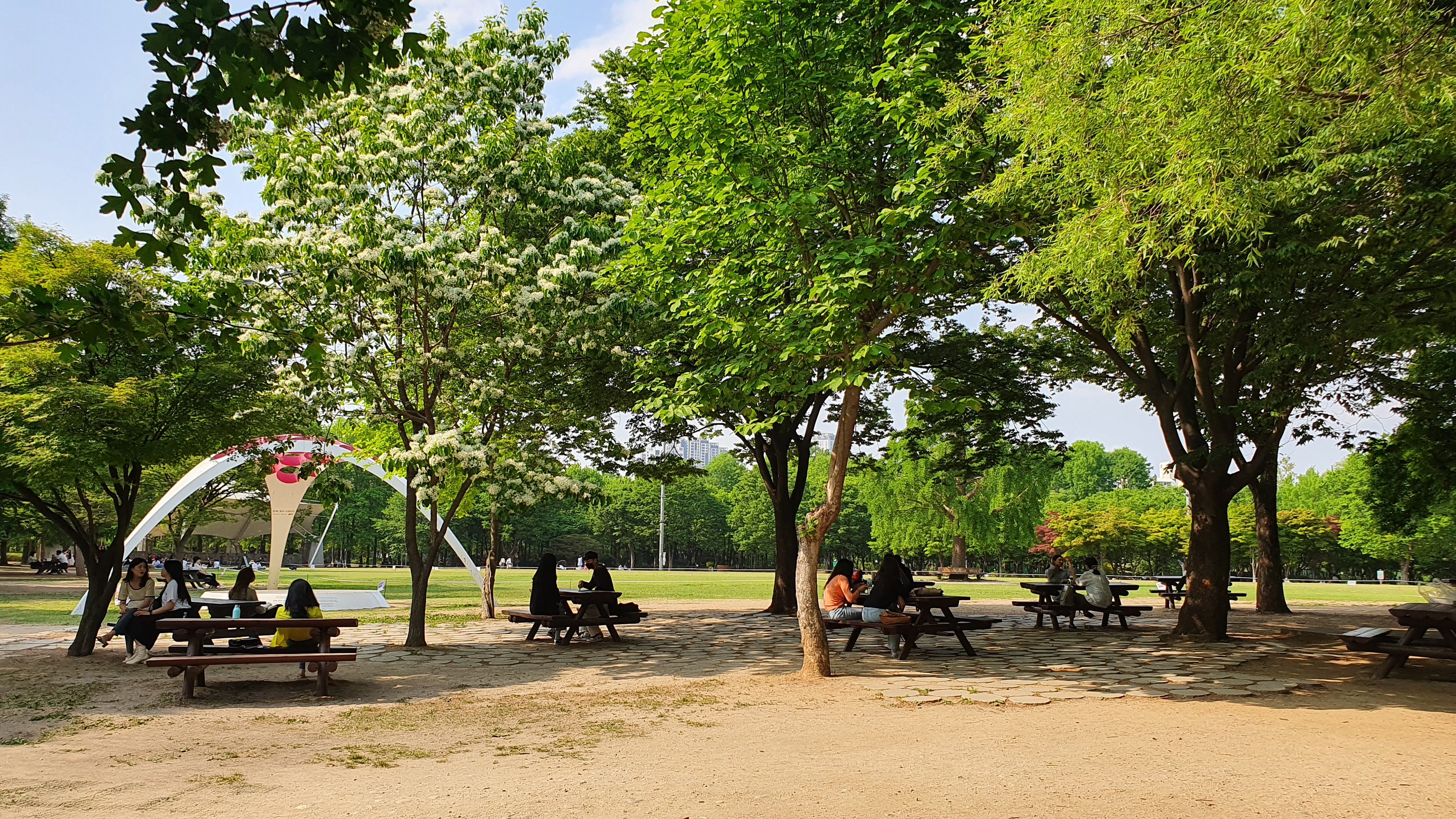 나무 그늘이 늘어진 공원 곳곳마다