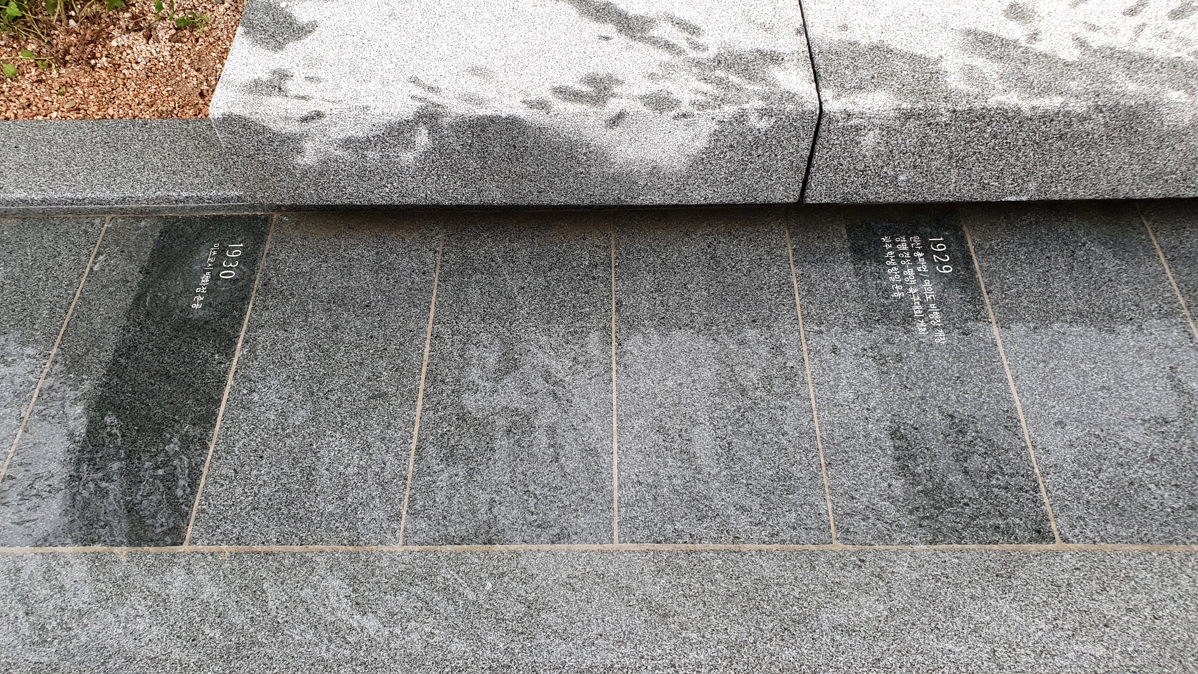 개울 바닥에는 근현대 역사가 연도별로 기록되어 있다.