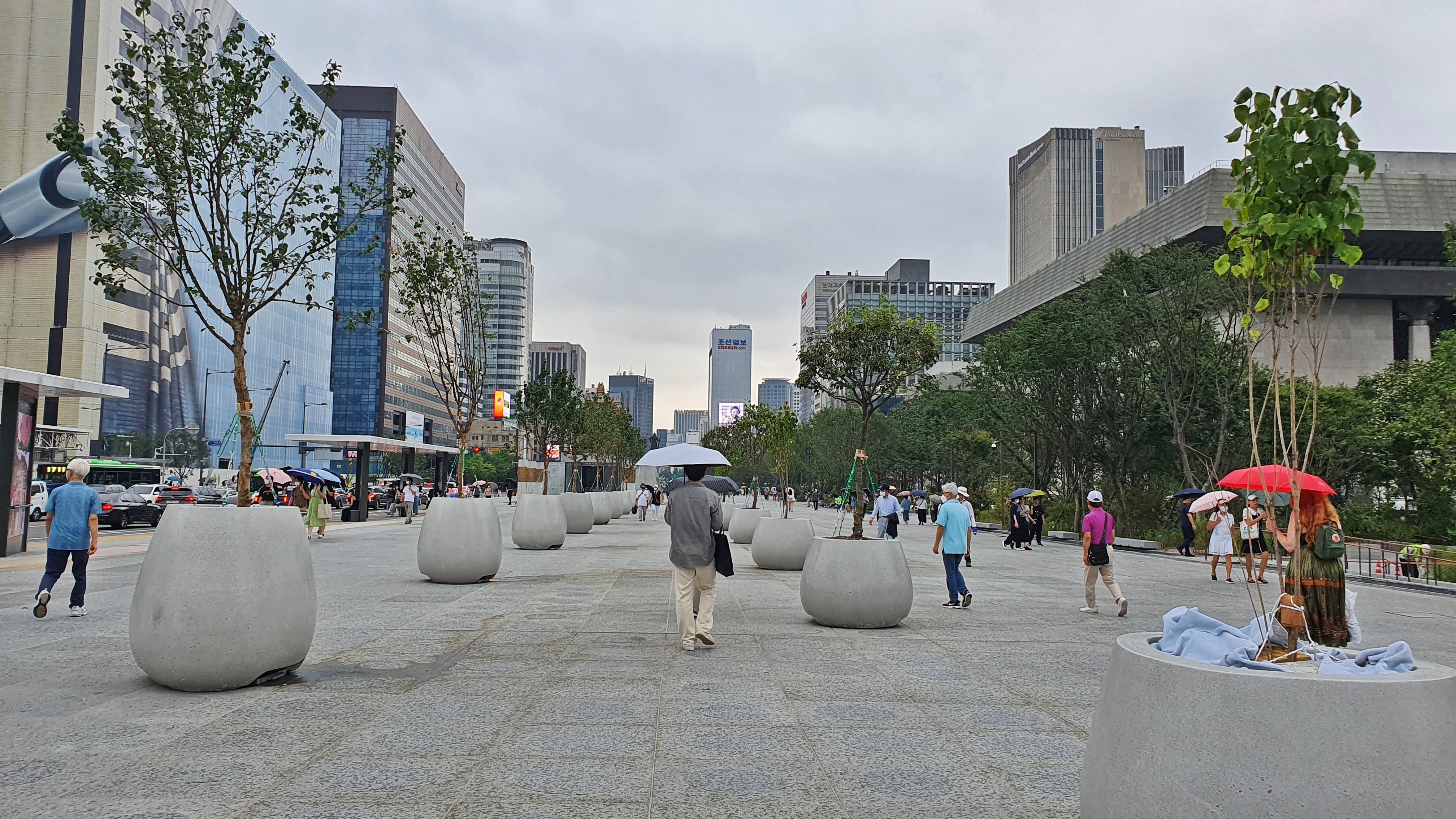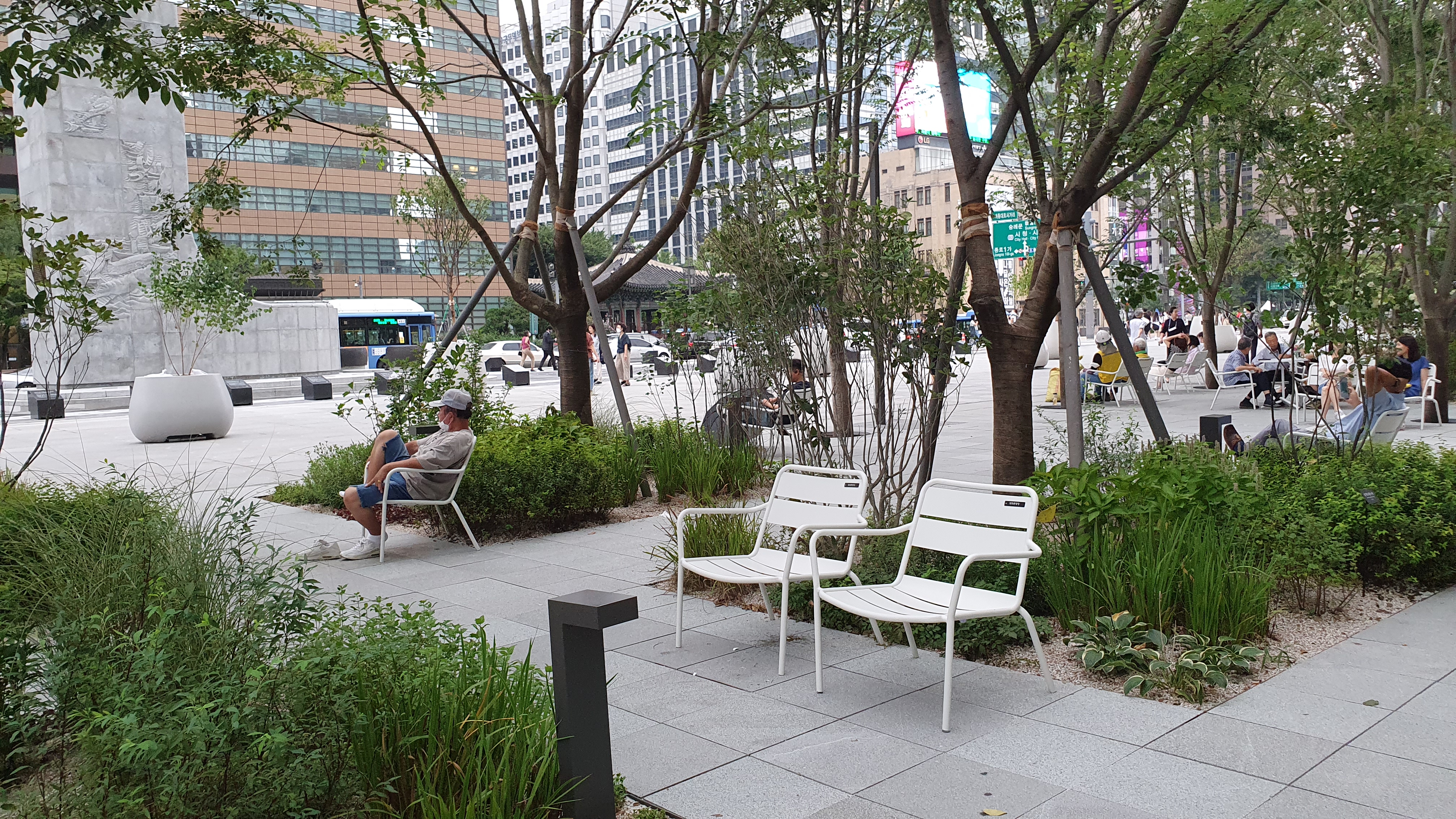햇빛 한 줄기도 가릴 곳 없던 광장에 나무와 꽃을 심어 놓고