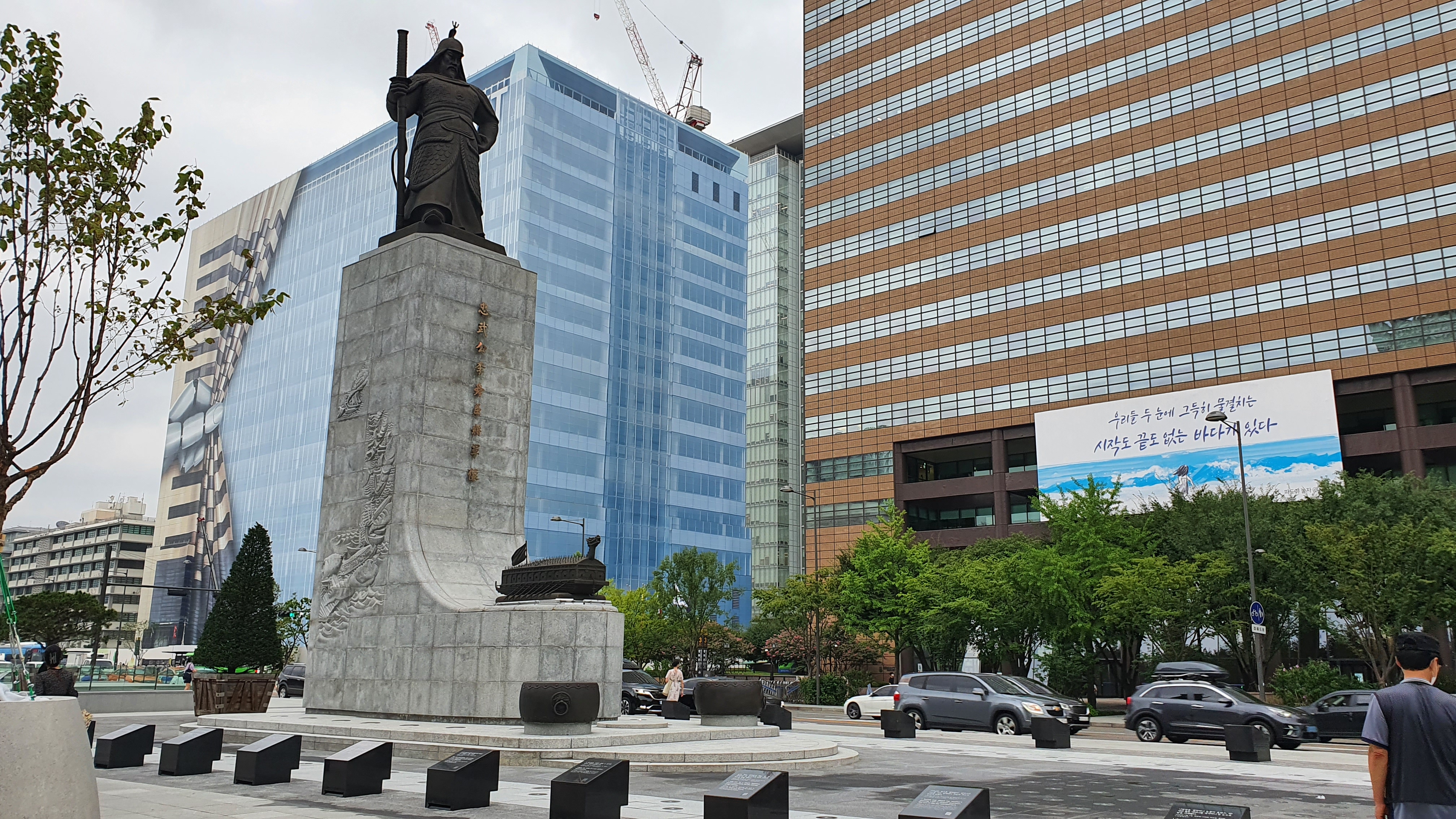 이순신 장군 동상 앞.