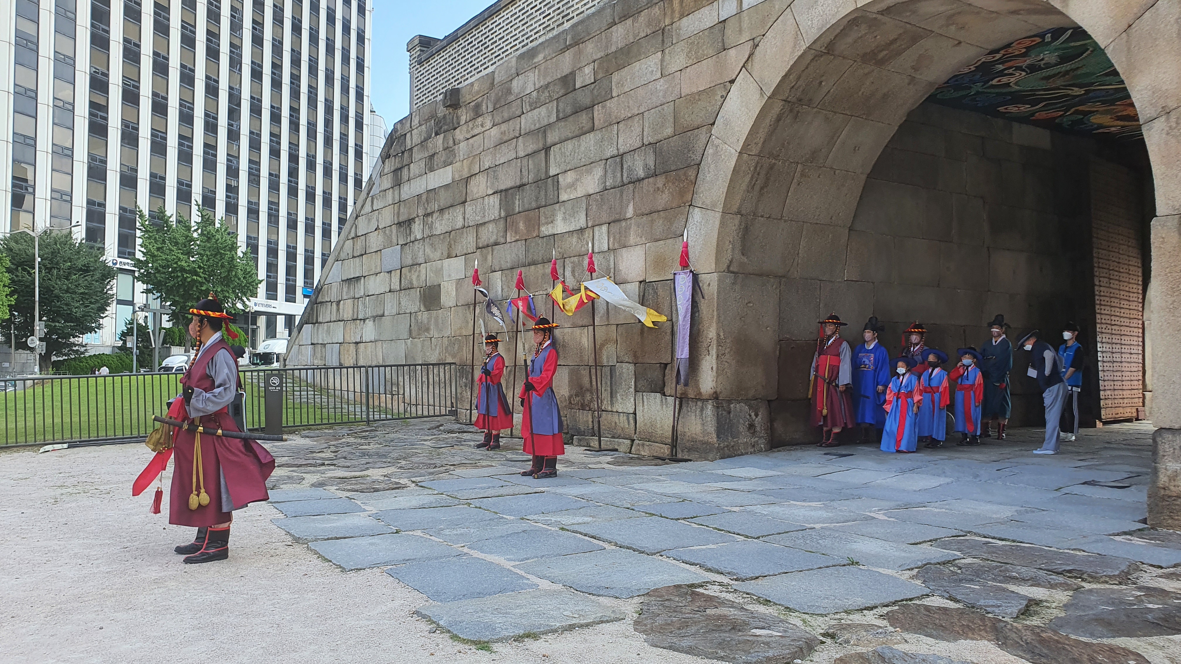 숭례문 파수군들이 새로 입장하면서