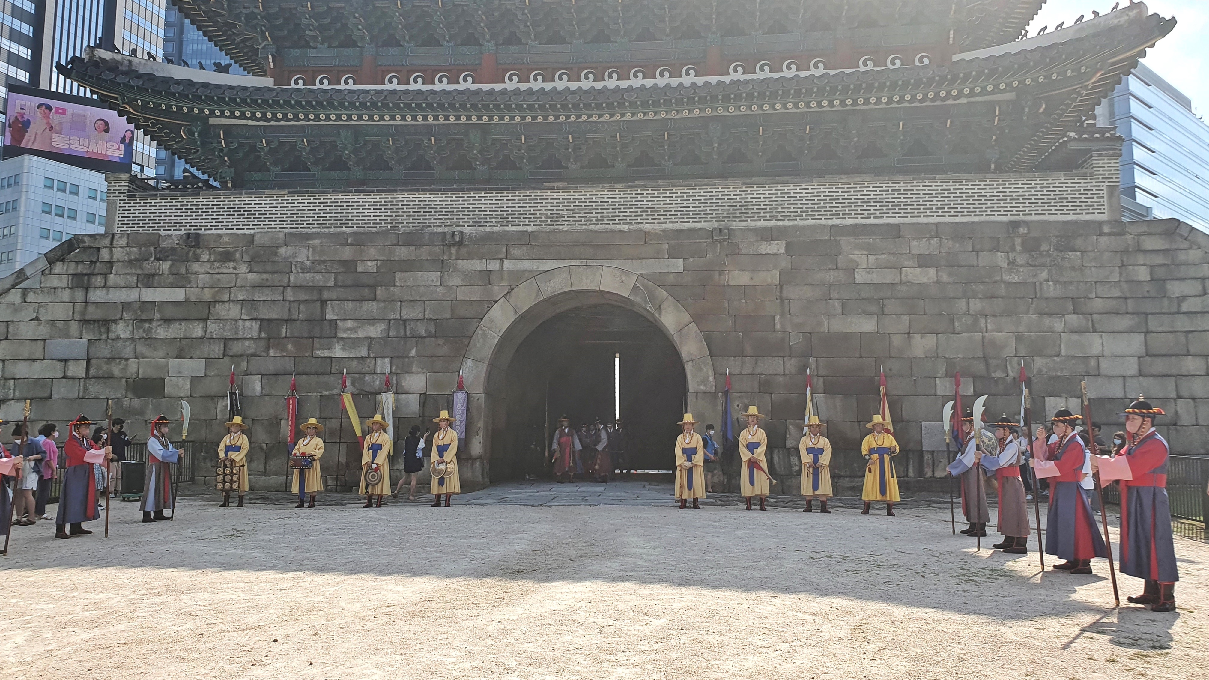 왕궁 수문장의 비호를 받으며 숭례문이 서서히 닫히고,