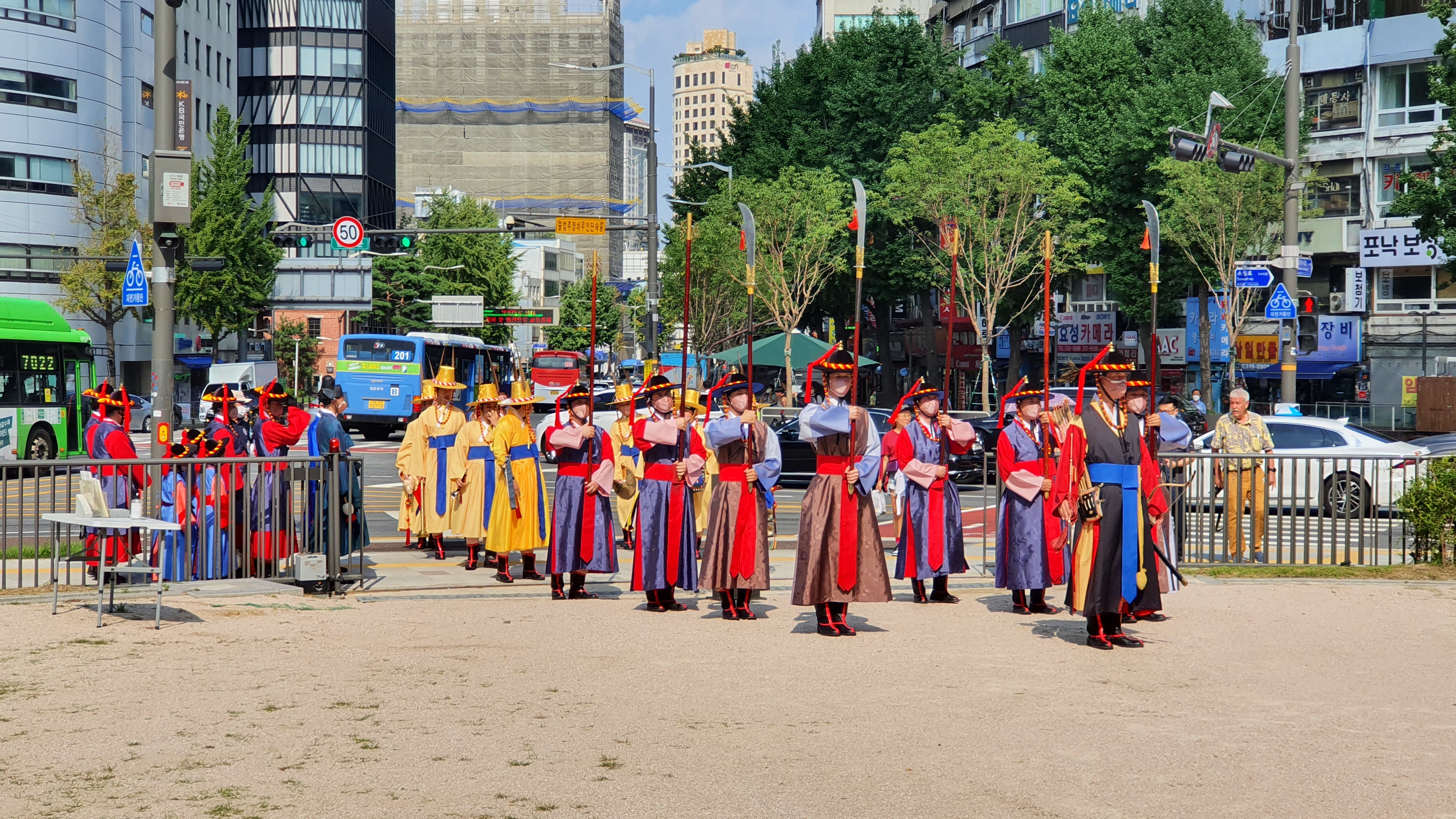 취타대의 연주에 맞춰 숭례문 앞으로 이동했다.