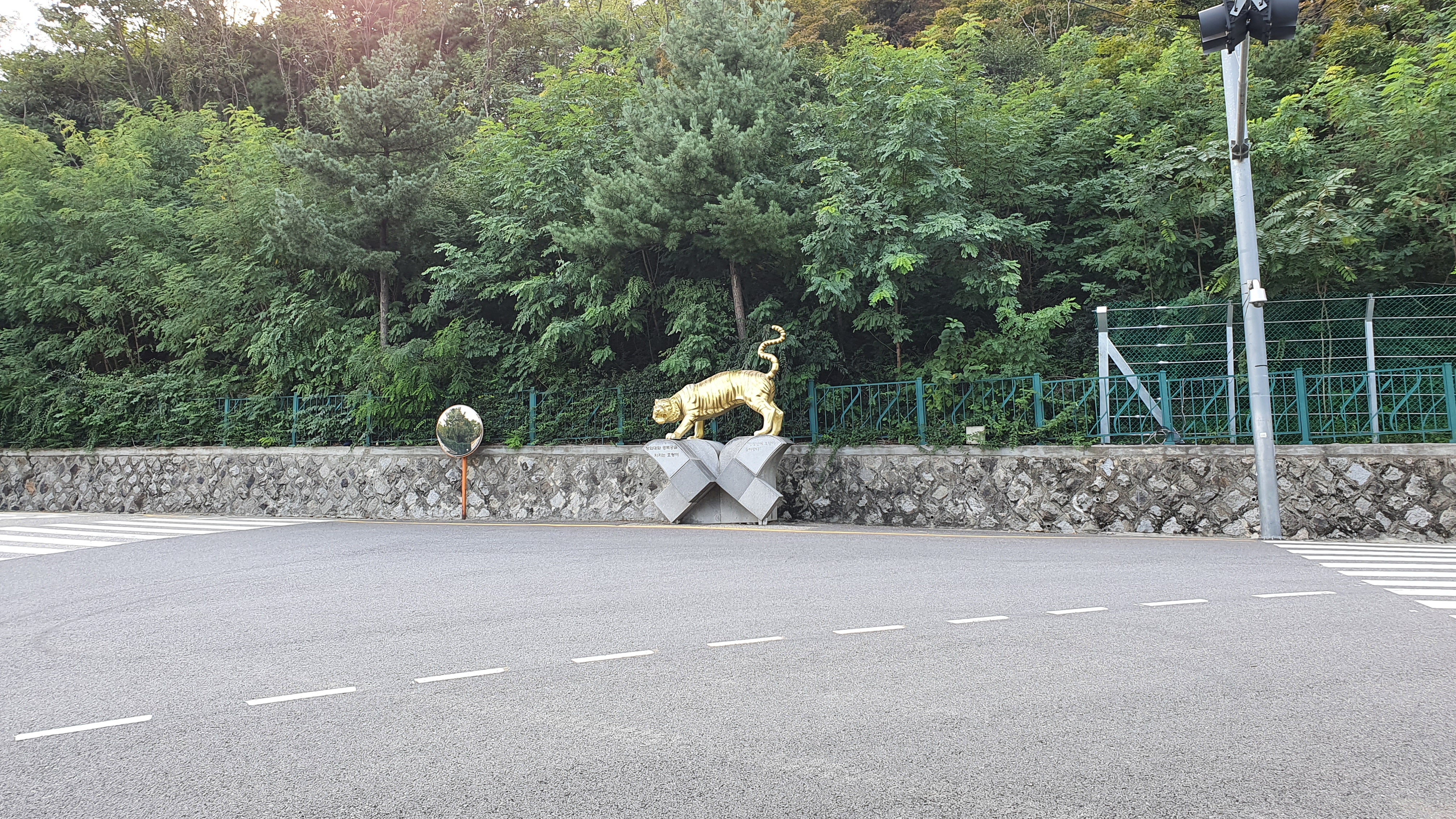 황금 호랑이가 길목을 지키고 있는 인왕 스카이웨이.