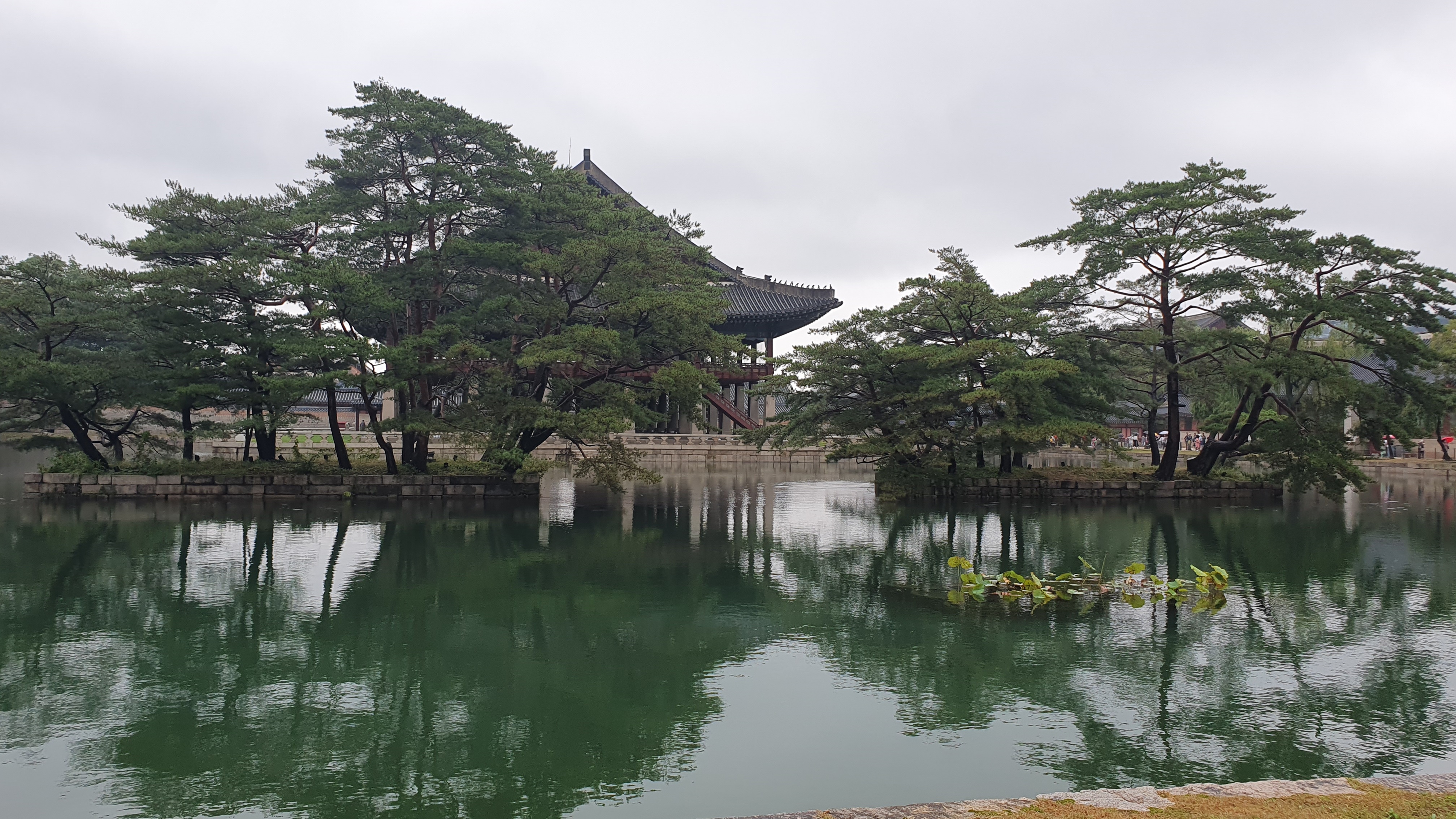 경회루 반영이 비에 젖어 흔들리고