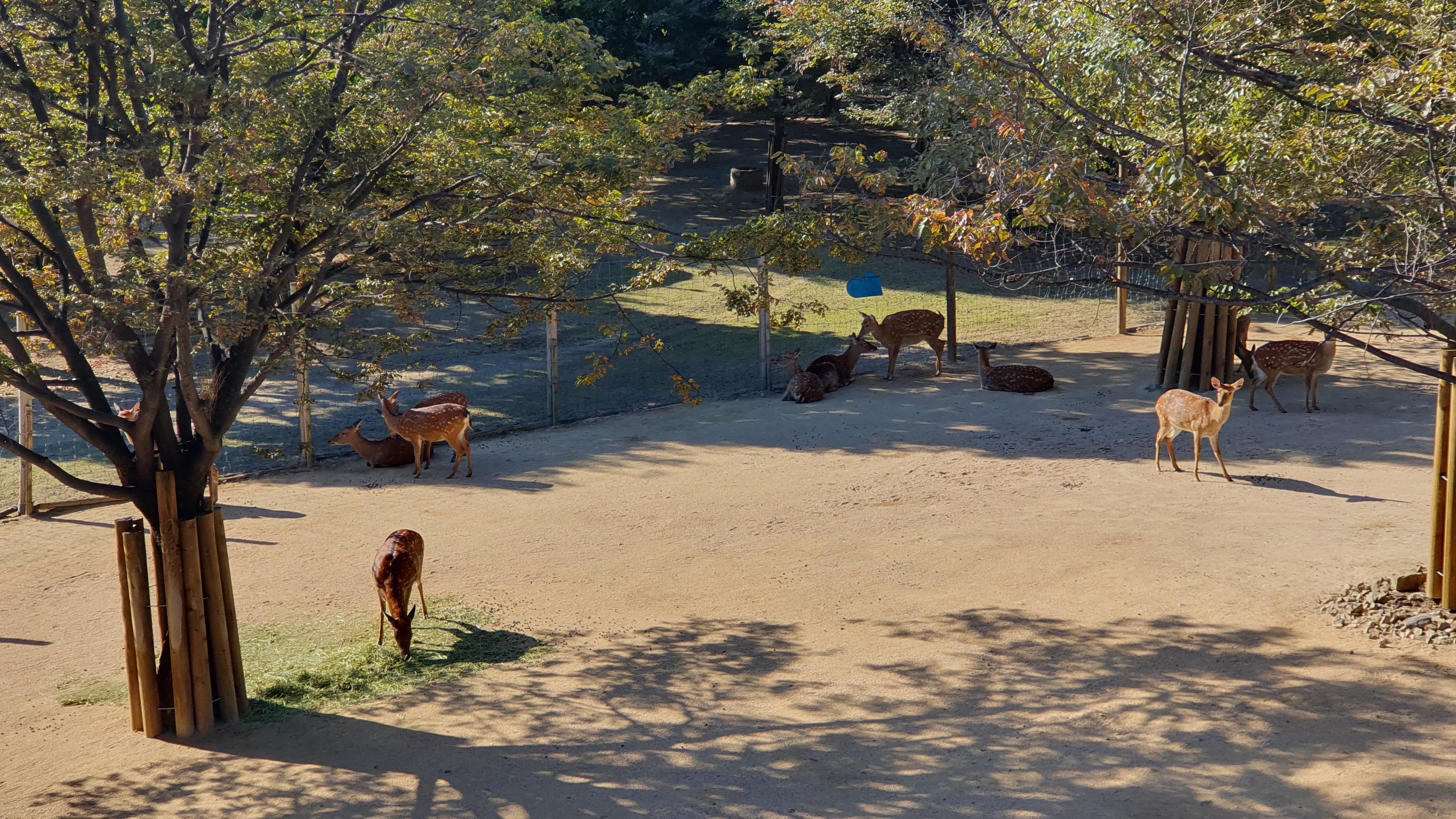 구름다리 위에 올라가니 사슴 우리가 훤히 내려다 보였다.