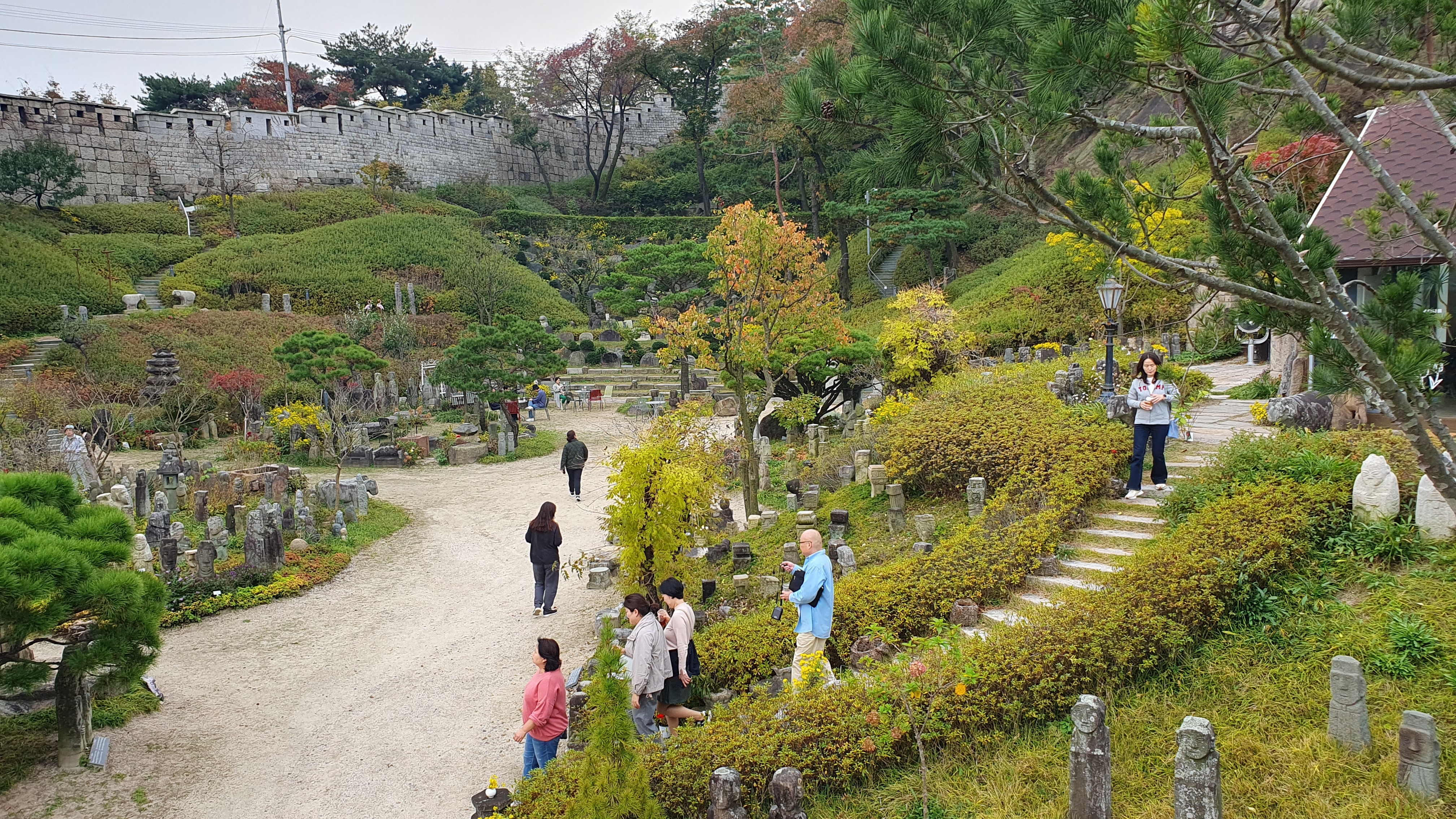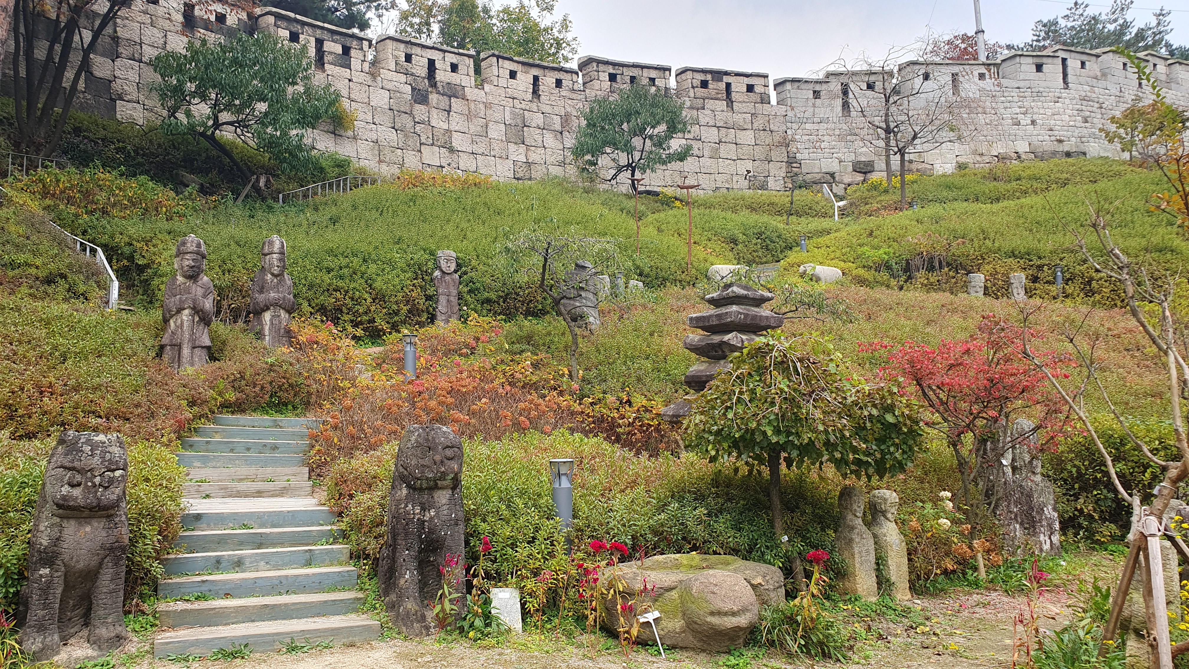 각종 수목 사이로 석물들이 전시되어 있고