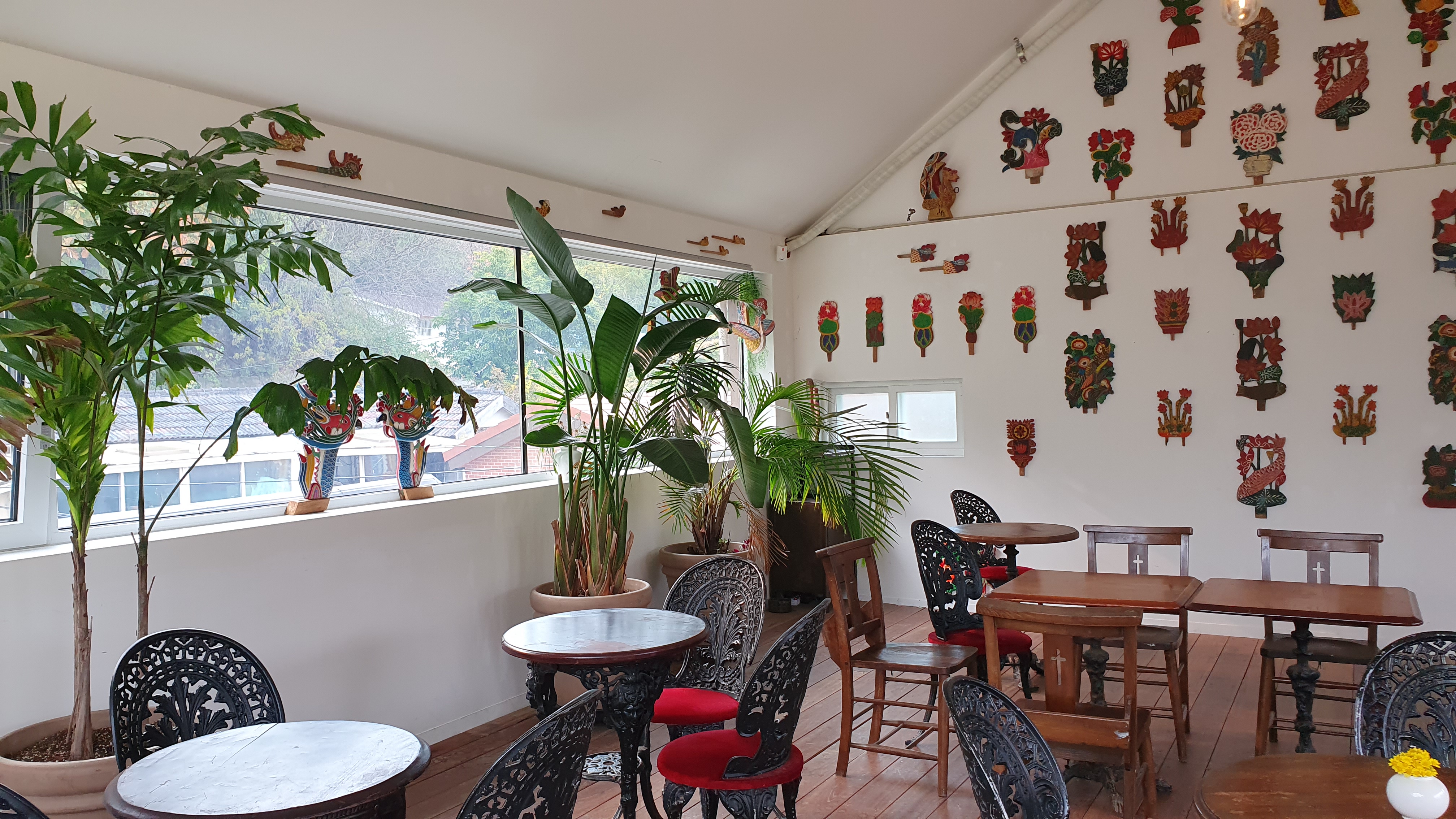 세미나룸은 상여를 꾸몄던 꽃장식들을 벽에 전시해 놓았다.